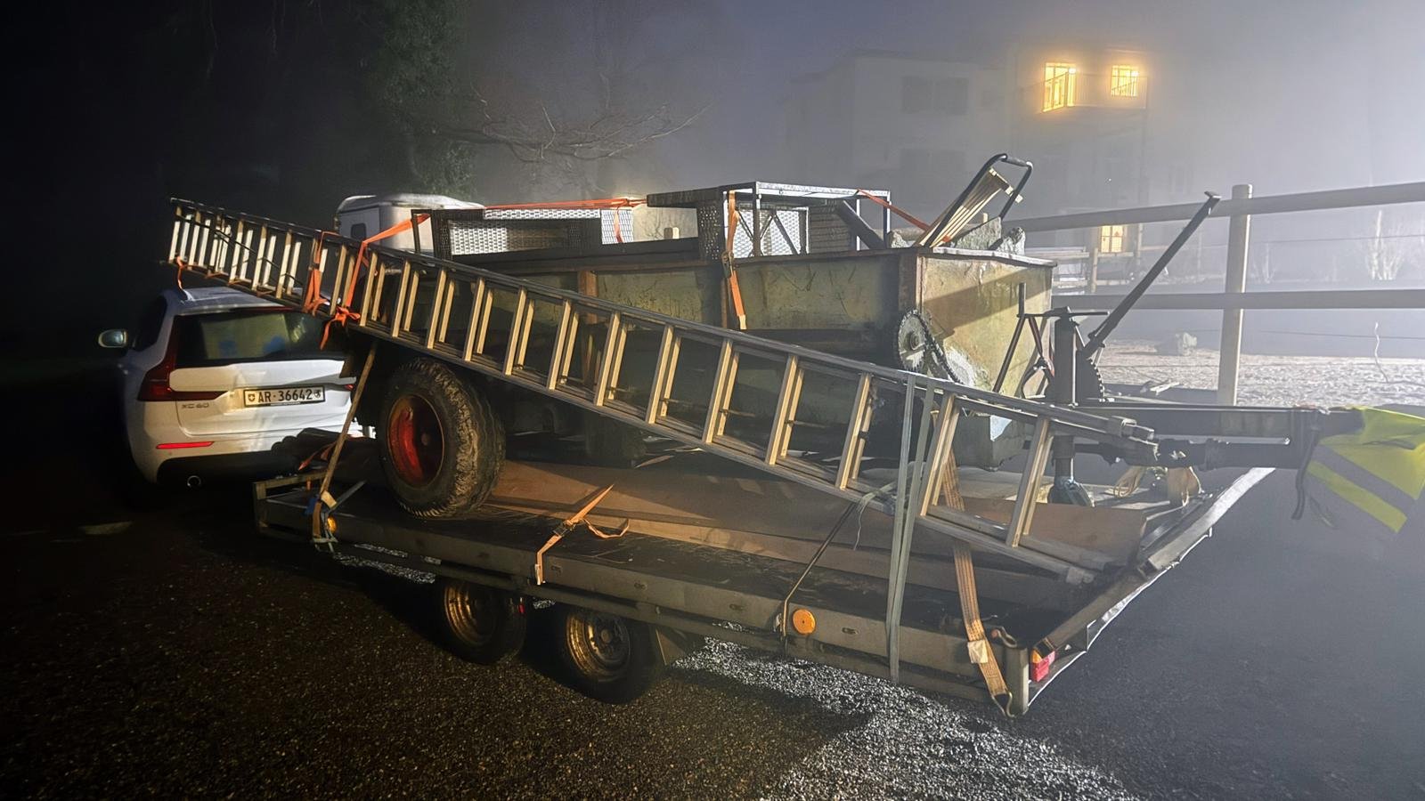 Ersatzwagen wurde durch den TCS organisiert aber da es ein Auto mit Anhängerkupplung sein musste gestaltete sich dies etwas aufwändiger. Das nächste verfügbare Fahrzeug befand sich 1 h weg - also mit dem Taxi dorthin, Auto schnappen und wieder 1h zurück in die Garage fahren. Dort den Jeep komplett ausräumen und alles in den Mietwagen umladen, den Hänger anhängen und dann konnte auch Isabelle endlich in Richtung Theneuille losfahren.