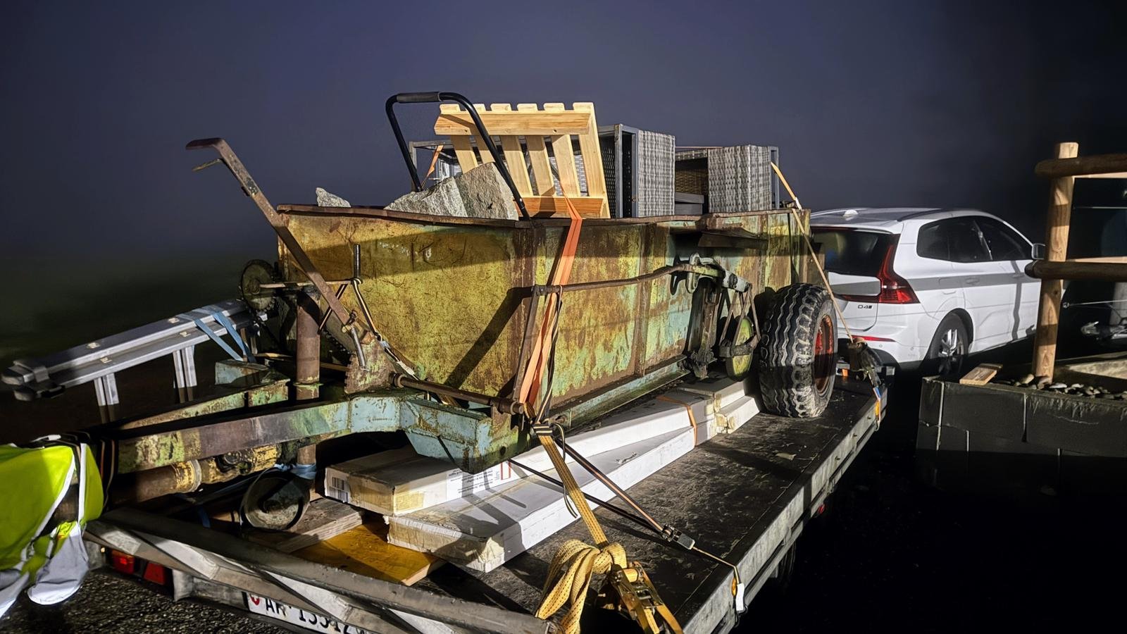 So haben wir entschieden, dass Nathy mit einem Taxi nach Theneuille fährt, um die Lieferung nicht zu verpassen. Es war eine kleine telefonische Odyssee durch zig Taxianbieter (es war ja immernoch früh am morgen) aber schlussendlich kam einer und hat Nathy mitgenommen. Zum Glück kam eine Stunde später bereits die Pannenhilfe und hat den Jeep, den Anhänger und Isabelle aufgeladen und in die 30 Minuten entfernte Garage gebracht. Dort stellte sich heraus: kompletter Motorschaden, da das Öl ausgelaufen war - somit stand der Jeep näher am Schrottplatz als an einer schnellen Reparatur.